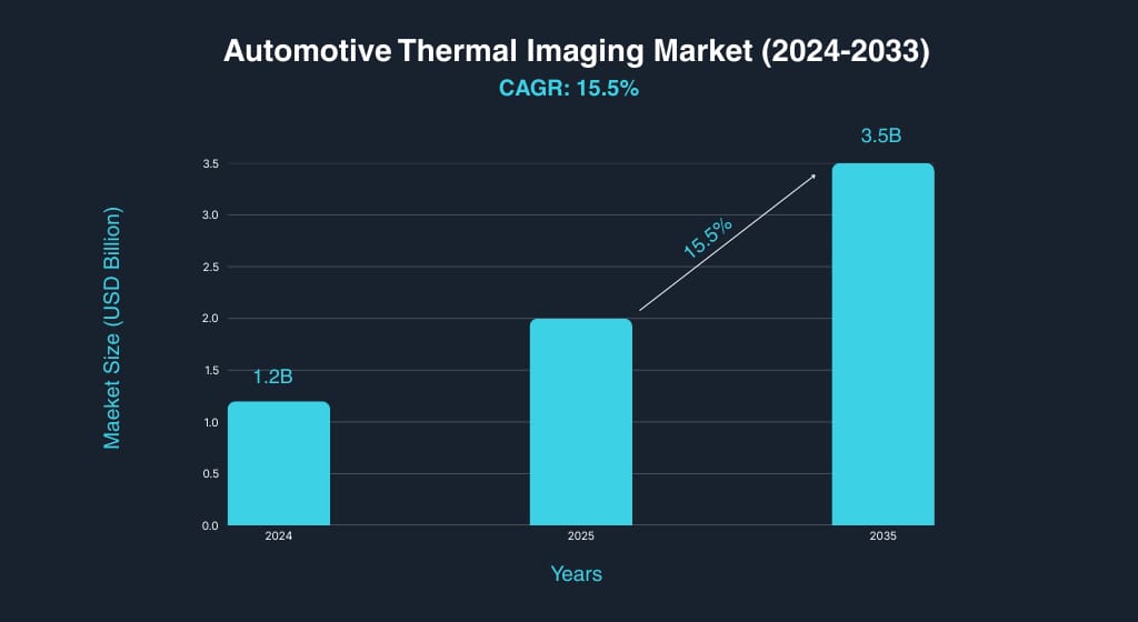 The automotive thermal imaging market reached $1.2 billion in 2024 and is projected to hit $3.5 billion by 2033 at a 15.5% CAGR, driven by NHTSA's 2029 mandate for nighttime automatic emergency braking.Pricing